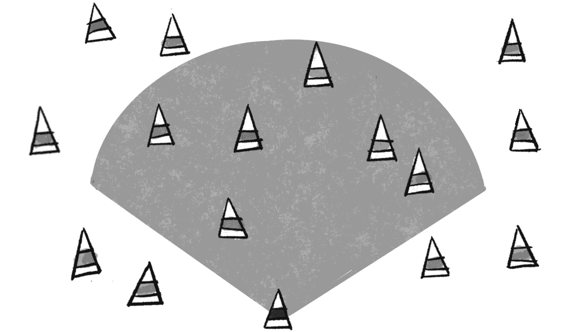 This approach still has flaws, however. For example, what if all the boids congregate in the corner and live in the same cell? Doesn’t that take me right back to checking all 2,000 against all 2,000? In fact, bin-lattice spatial subdivision is most effective when the elements are evenly distributed throughout the canvas. A data structure known as a quadtree, however, can handle unevenly distributed systems, preventing the worst-case scenario of all the boids crowding into a single cell.